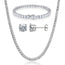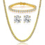 This exquisite set includes a Tennis Necklace, Matching Bracelet, and Elegant Earrings, crafted to perfection for a cohesive and radiant look.
